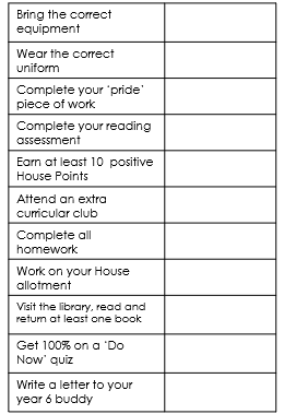A pen, pencil, ruler, rubber, calculator and your PE kit on PE days.
